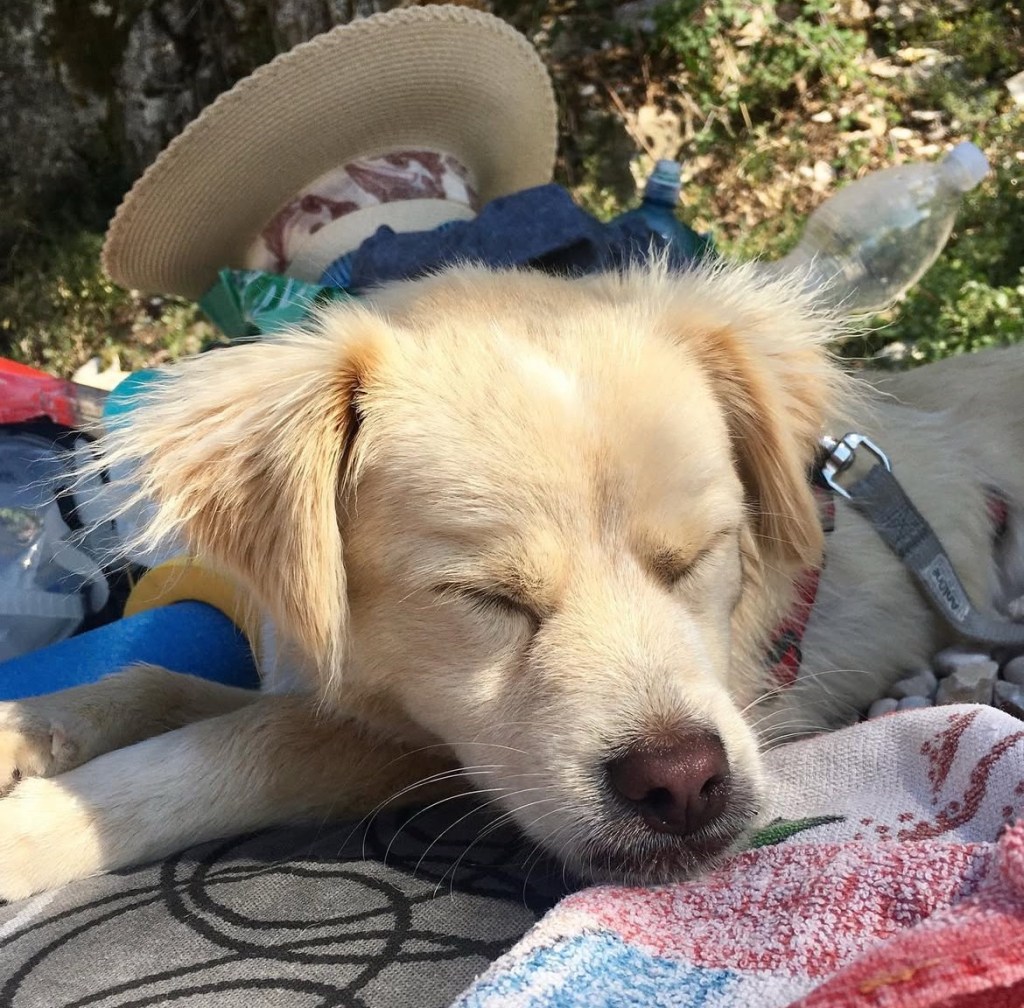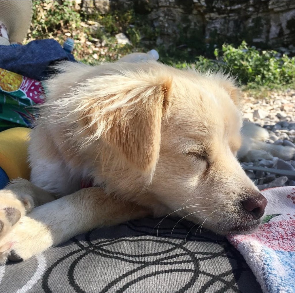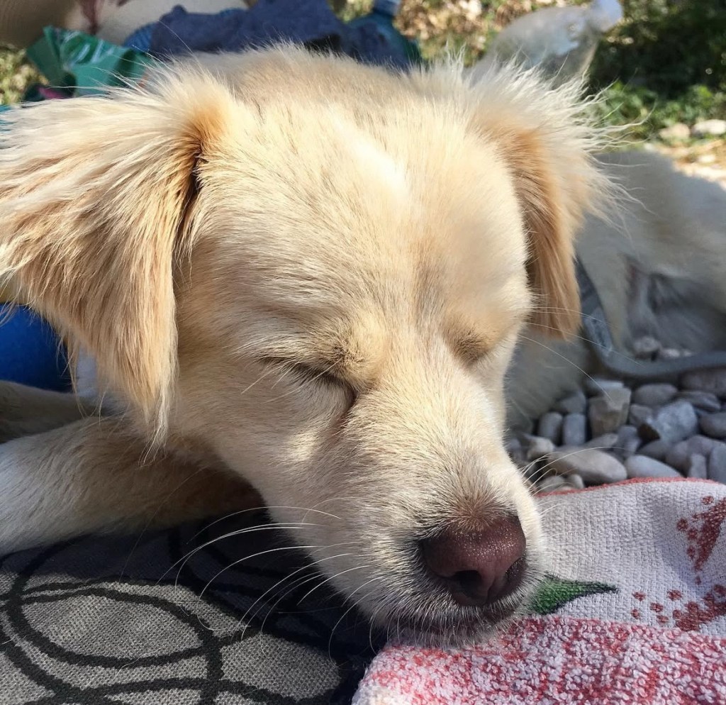 Wir sind noch immer auf den Brionischen Inseln und waren heute wieder am Meer. Fenja findet das sehr anstrengend, sie kann aber natürlich jederzeit im Schatten schlafen.