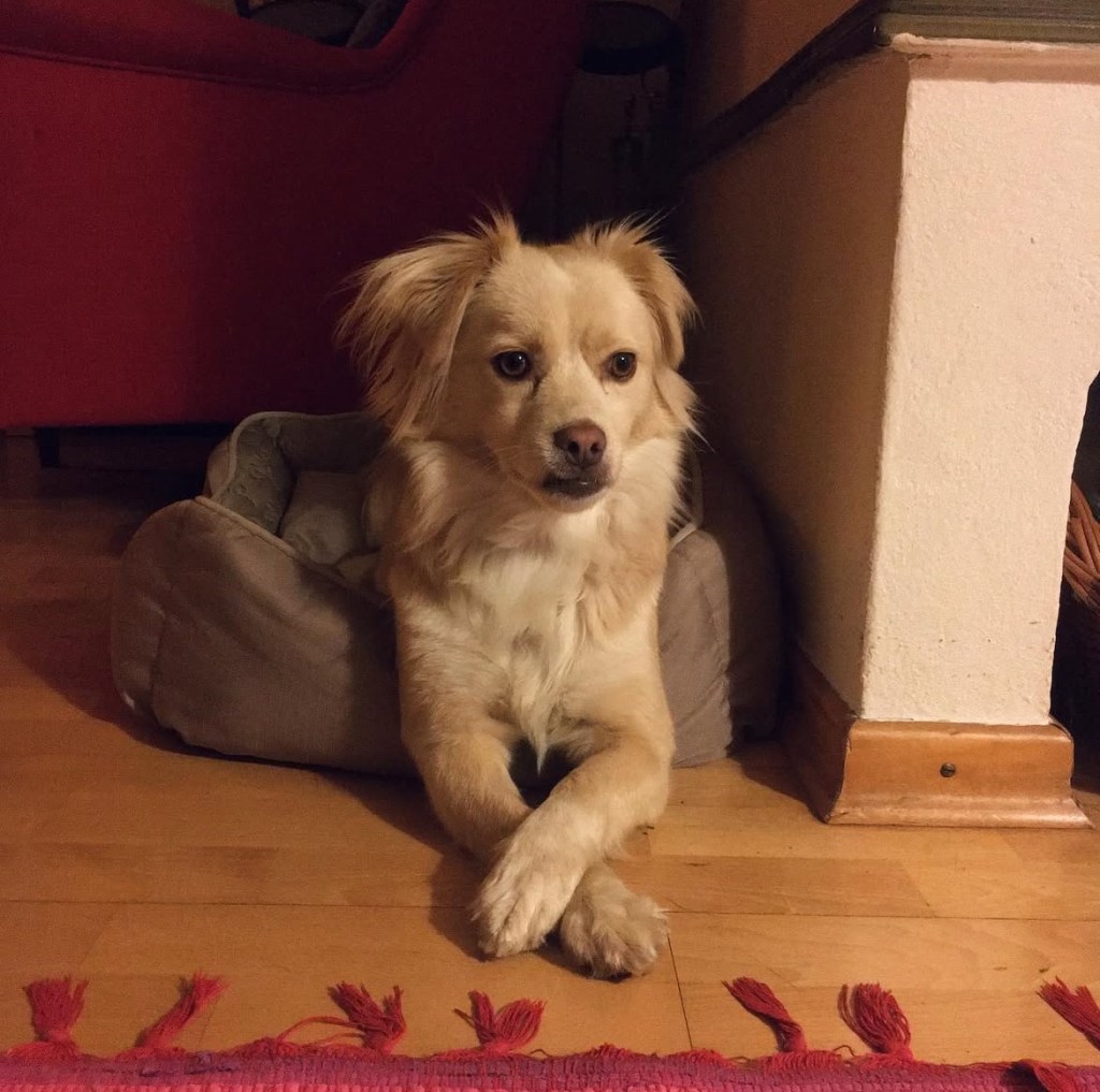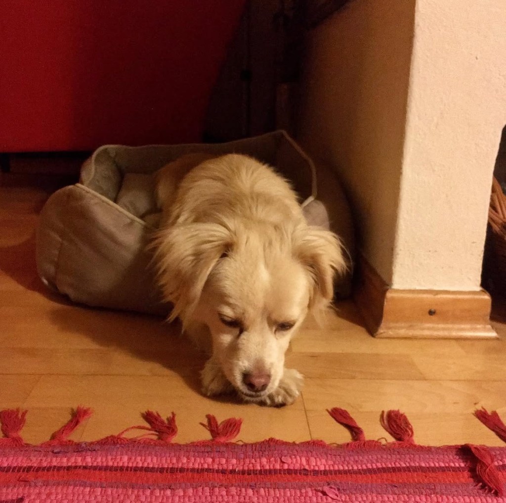 Wir üben aktuell, dass Fenja auf der Decke bleibt – wobei Decke sich nicht unbedingt auf eine Decke bezieht, sondern einfach bedeutet „Bleib da, wo du gerade bist, egal in welcher Position“.