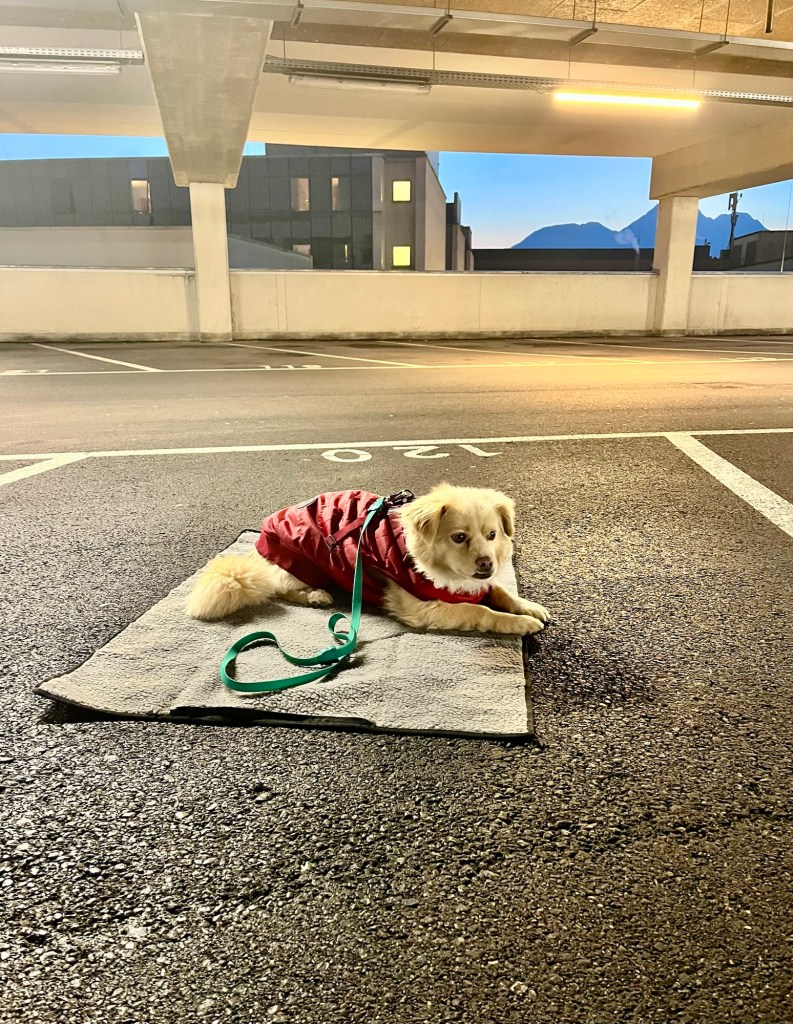 Vor allem auf der Decke bleiben kann sie hervorragend – egal wie lang, egal wo ich steh. Ich bin heut wieder wirklich stolz auf sie. Und obwohl rundherum andere Hunde sind, bleibt sie fokussiert und geht auch brav bei Fuß.
