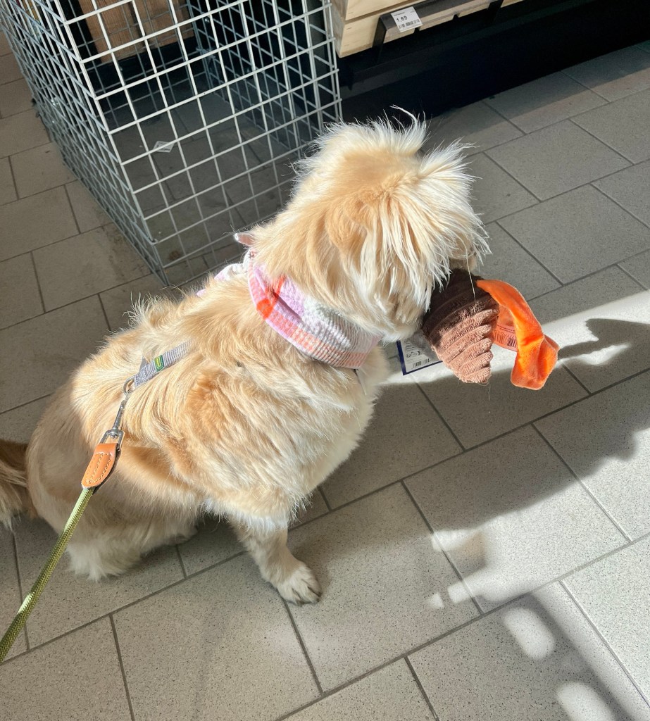 Fenja liebt es, in der örtlichen Fressnapf-Filiale durch die Gänge zu streifen und an allem (!) zu schnuppern.