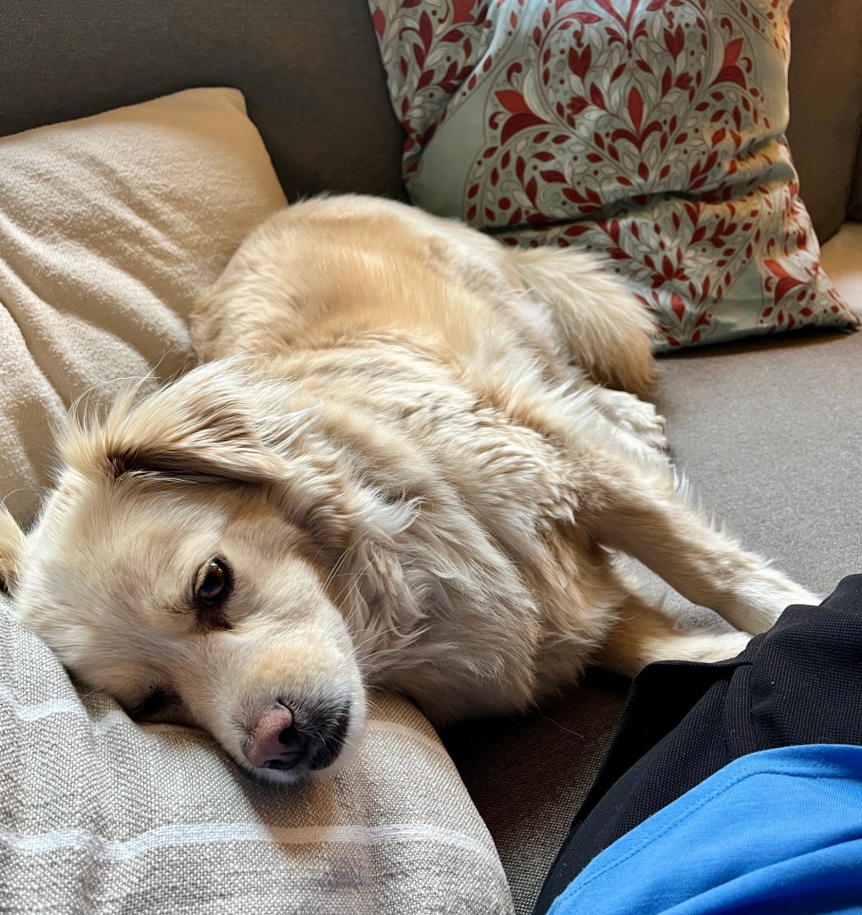 Heute war ein anstrengender Tag – viel los in der Arbeit, alles stressig, doofes Wetter. Wir knotzen erst mal gemütlich am Sofa.