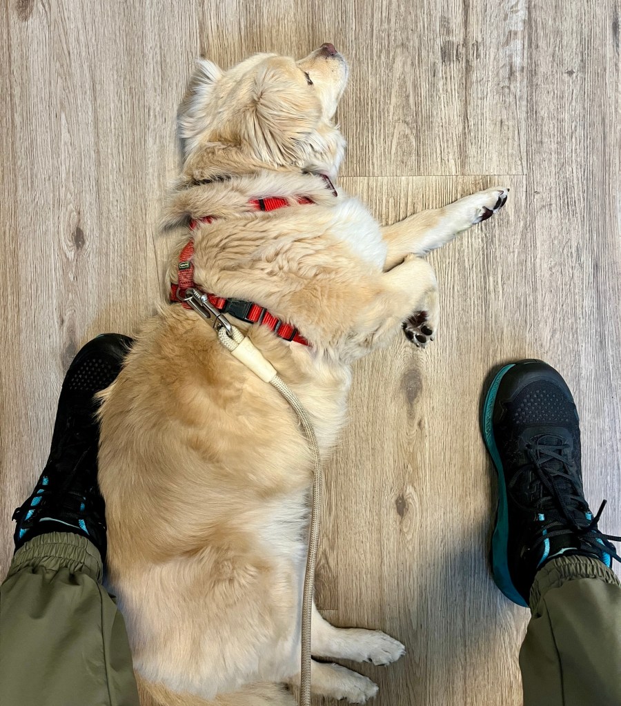 Fenja durfte dann gegen Ende eine Runde mit einer anderen Hündin laufen, die schon auf ihre Stunde gewartet hat. Dabei kam‘s zu einem Zusammenstoß, Fenja hat aufgejault und ist danach gehumpelt. Also sind wir gleich zur Tierärztin gefahren.