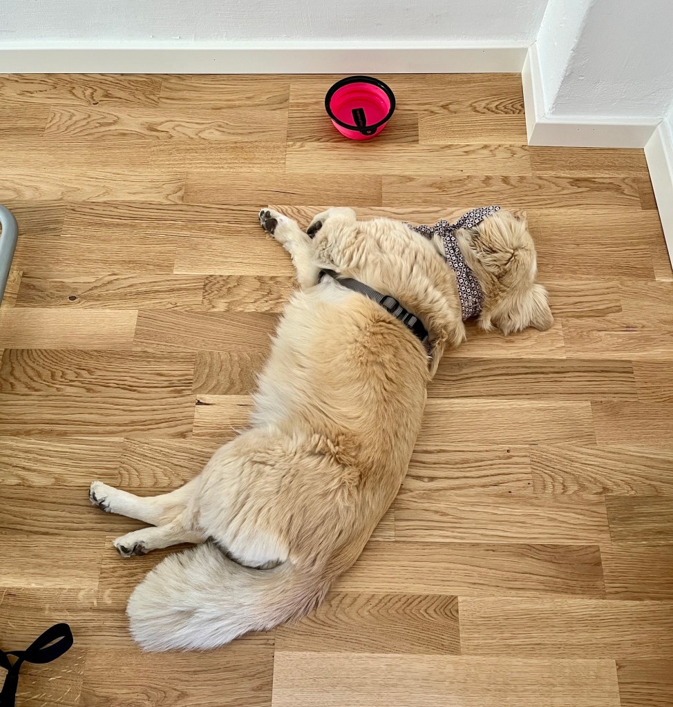 Nach der Begrüßung hieß es dann: rumliegen und still sein – das kann Fenja sehr gut.