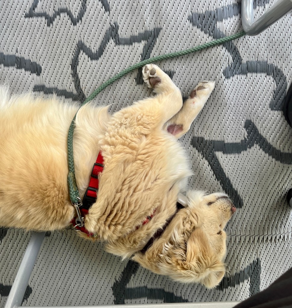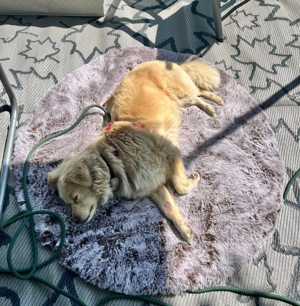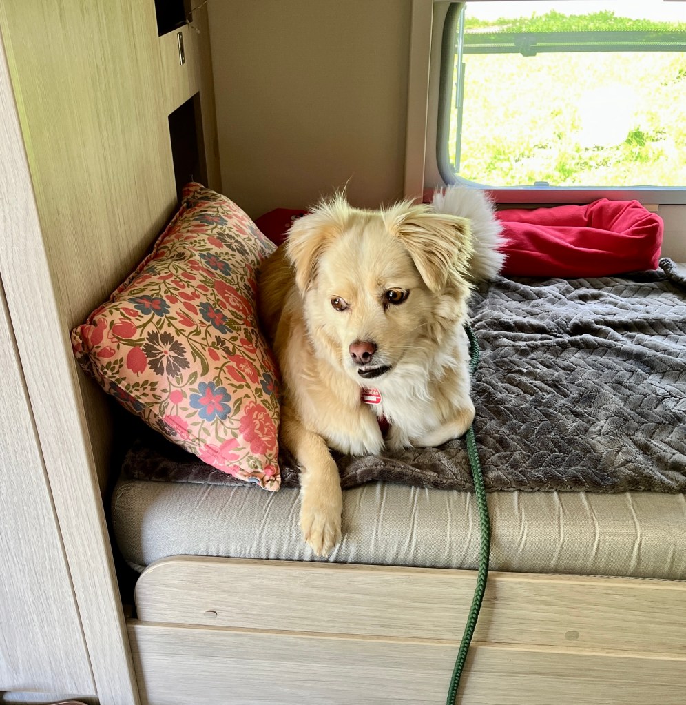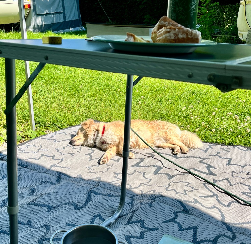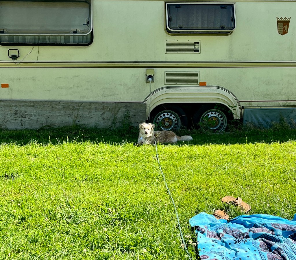 Weil das Wetter fein war und Fenja nicht wirklich viel tun kann aktuell (ihr rechtes Hinterbein ist gar nicht gut), waren wir beim Wohnwagen – einfach nur zum Chillen.