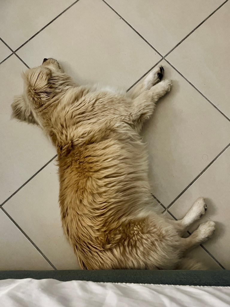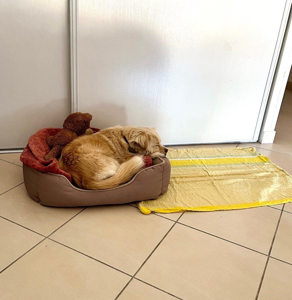 Heute morgen ging Fenjas Herrchen tauchen. Die Damen haben währenddessen gechillt. Fenja hat ja ihr Bett dabei … da lässt es sich überall gemütlich entspannen.