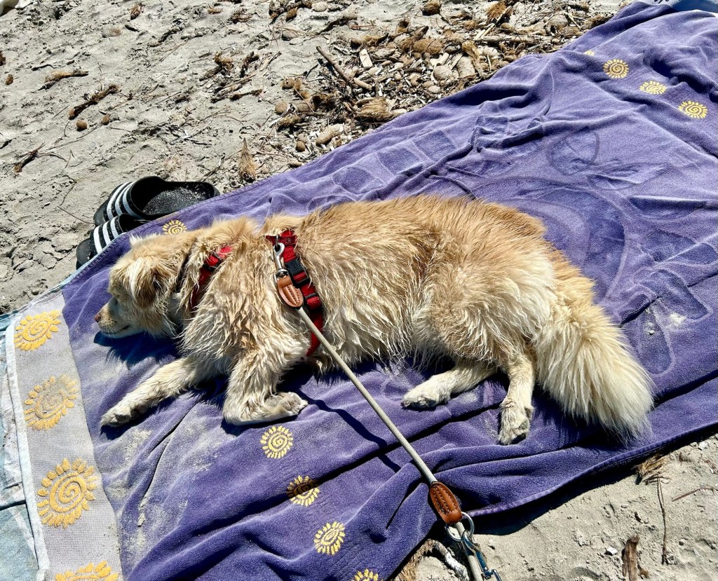 Danach lag sie beleidigt am Strand und hat sich geputzt und in der Sonne getrocknet.