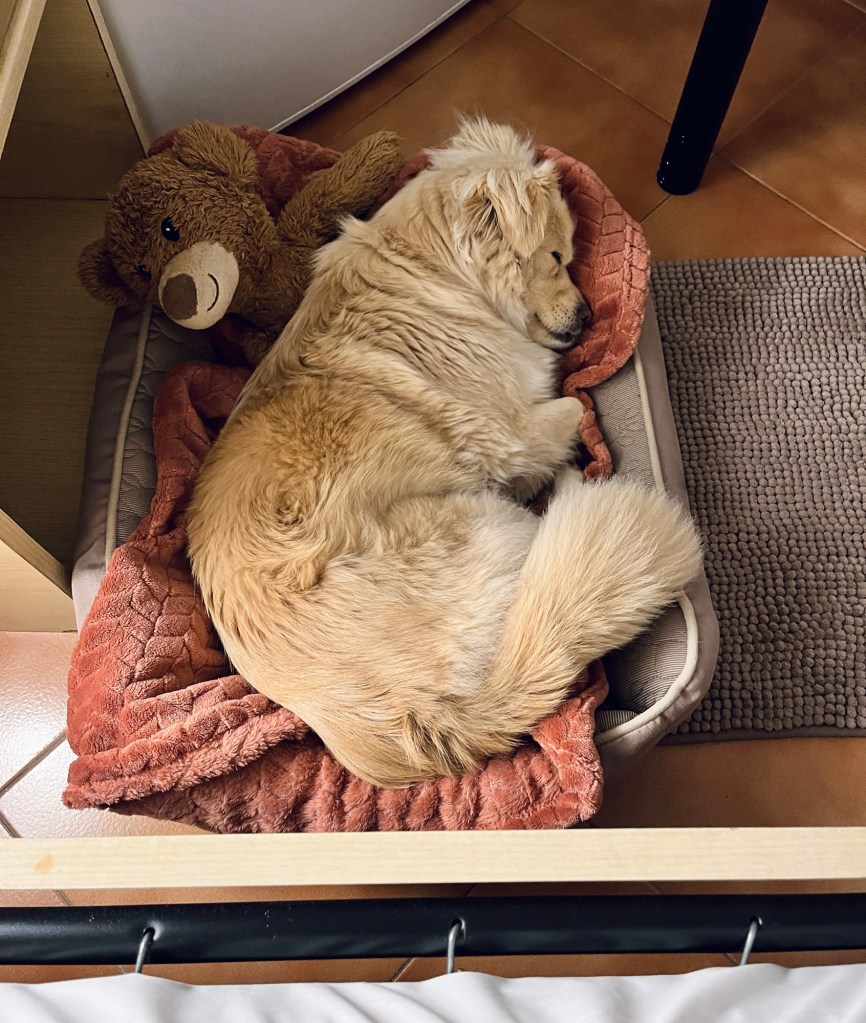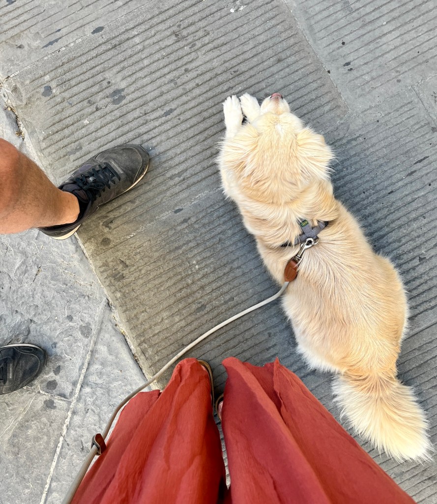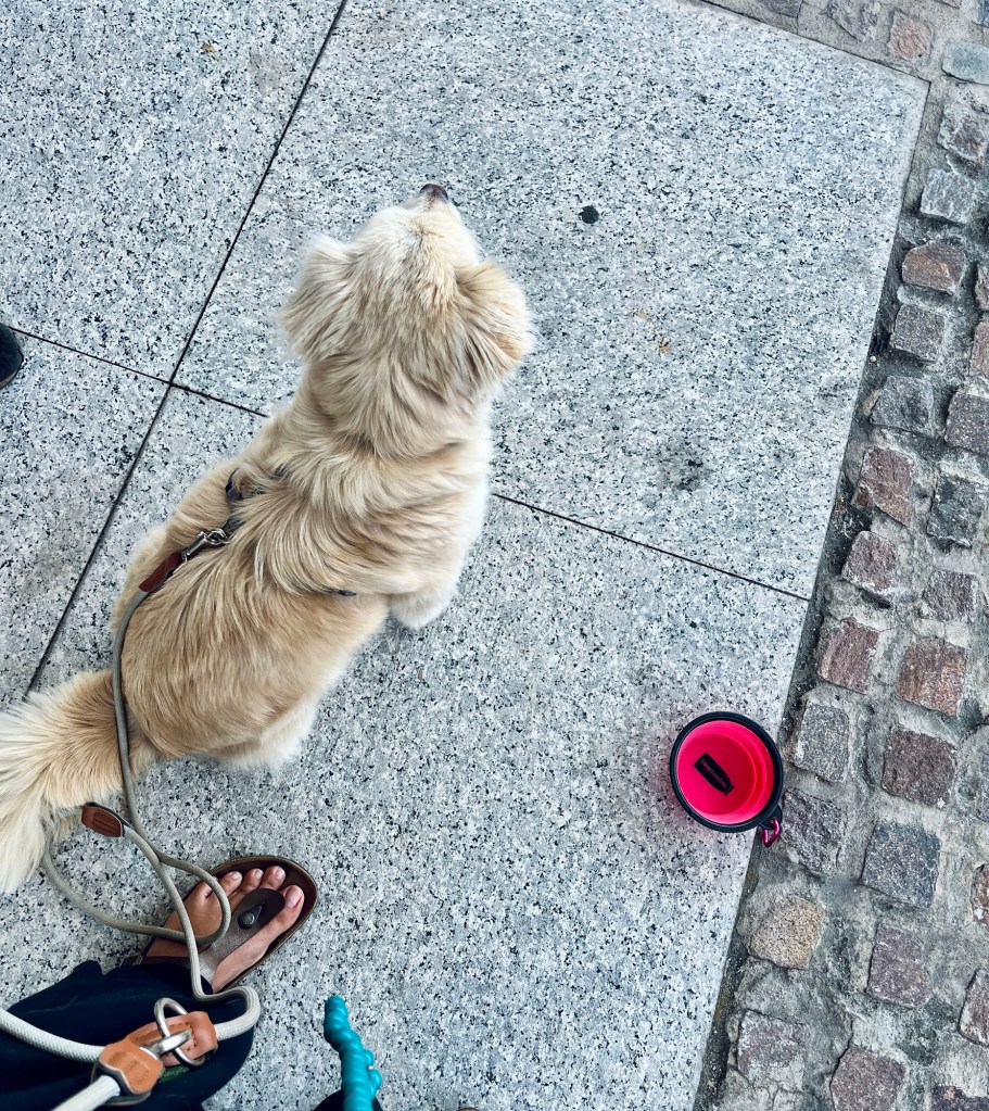 Den Weg zur Hundetoilette fand sie allerdings extrem spooky. Wegen ihrer kranken Knie hab ich sie sowieso getragen, weil‘s über viele Treppen ging.