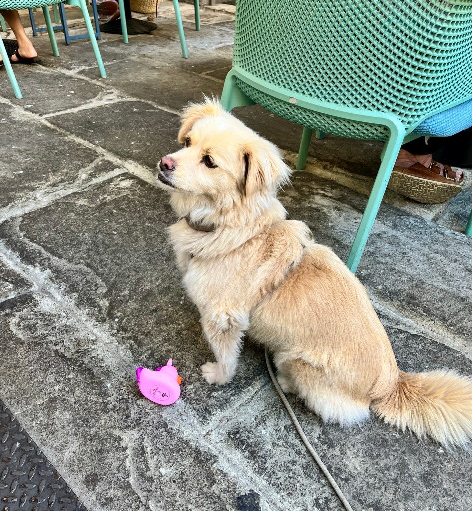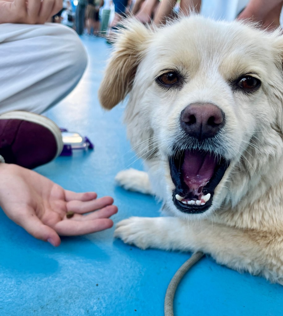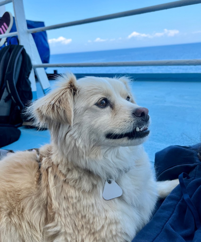 Am Hafen von Bastia haben wir vor der Überfahrt einen Herrn mit Angsthündin kennengelernt, die Fenjas Trainingsente toll fand zum Fokusieren und damit Ablenken … ich hab sie dem Herrn also geschenkt. (Und sie später wiederbekommen, weil eine Frau zufällig eine dabei hatte, die sie nicht braucht. Sachen gibt‘s.)