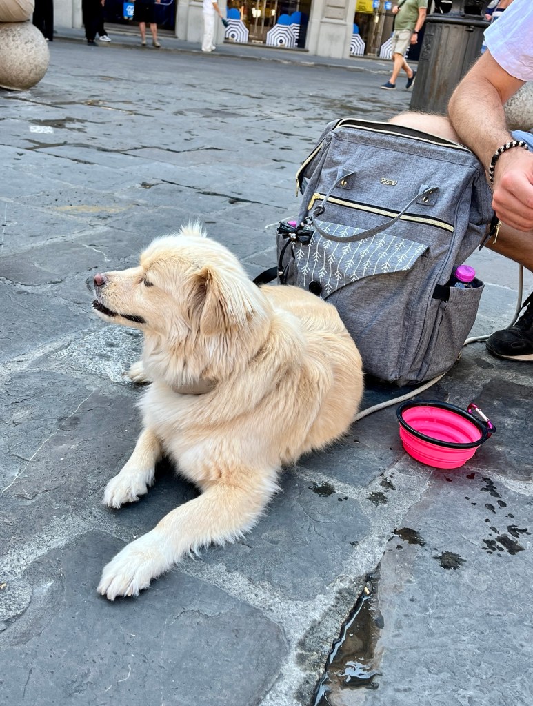 Fenja ist komplett im Urlaubsmodus und macht echt alles mit – zum Beispiel ein sehr spätes Abendessen in Florenz inkl. anschließend nächtlichen Spaziergang durchs sehr stressige Florenz.