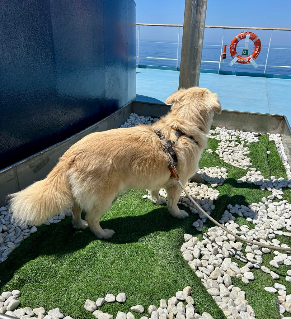 Fenja hat deswegen zweimal die Hundetoilette an Bord benutzt …
