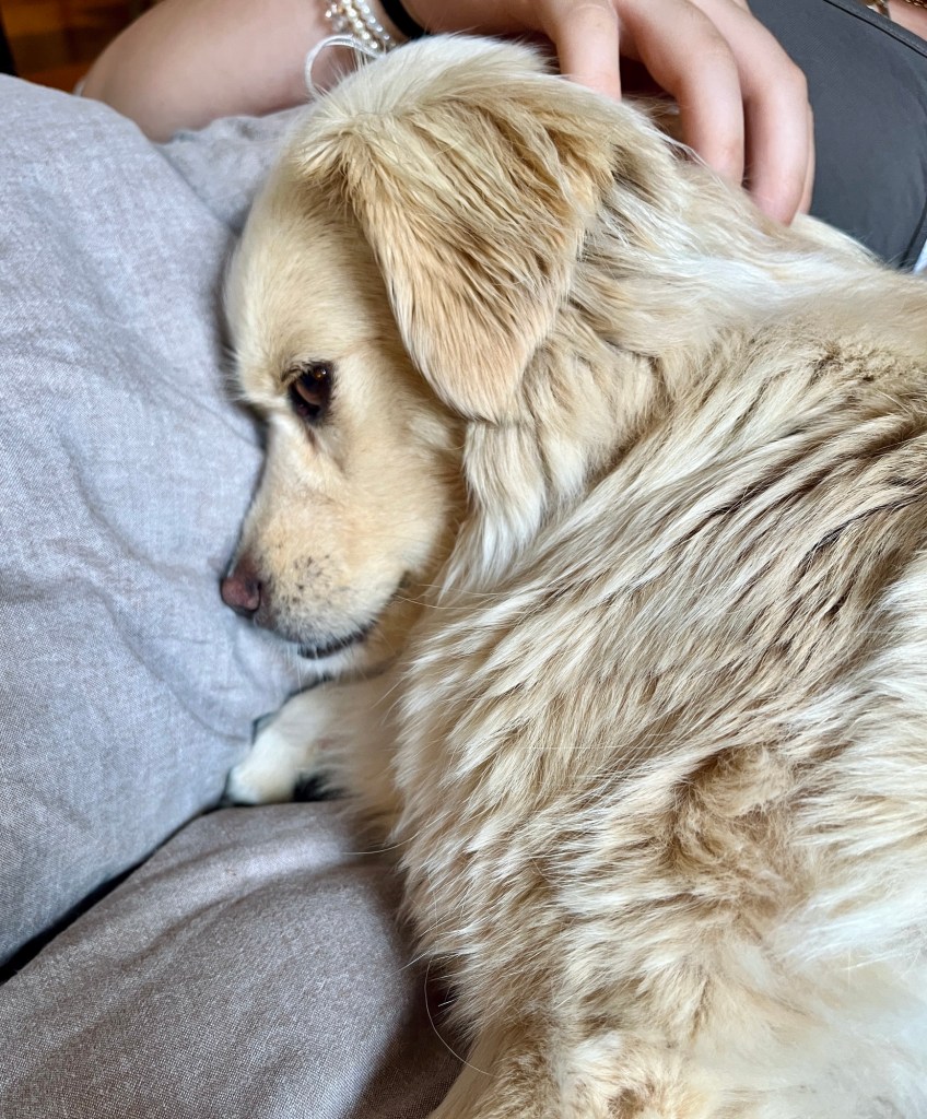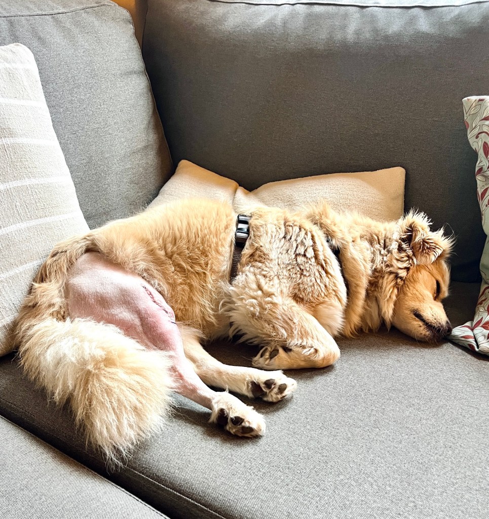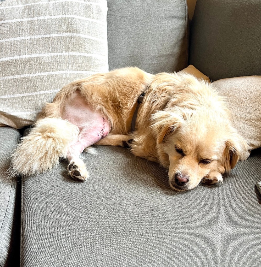 Fenja geht‘s den Umständen entsprechend gut. Sie liegt viel rum, belastet aber beim Laufen immer das operierte Bein, was super ist!