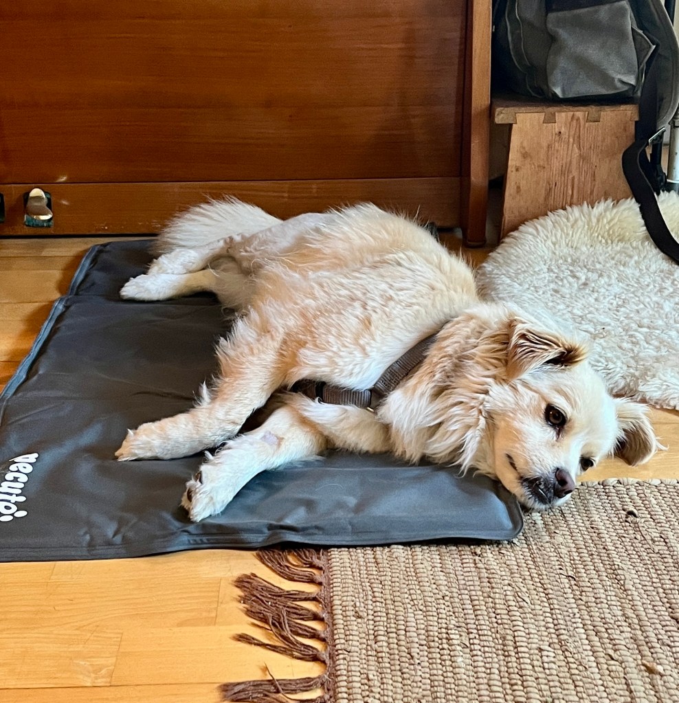 Daheim wurde erstmal ausgiebig gerastet – im Bettchen und auf der Kühlmatte.
