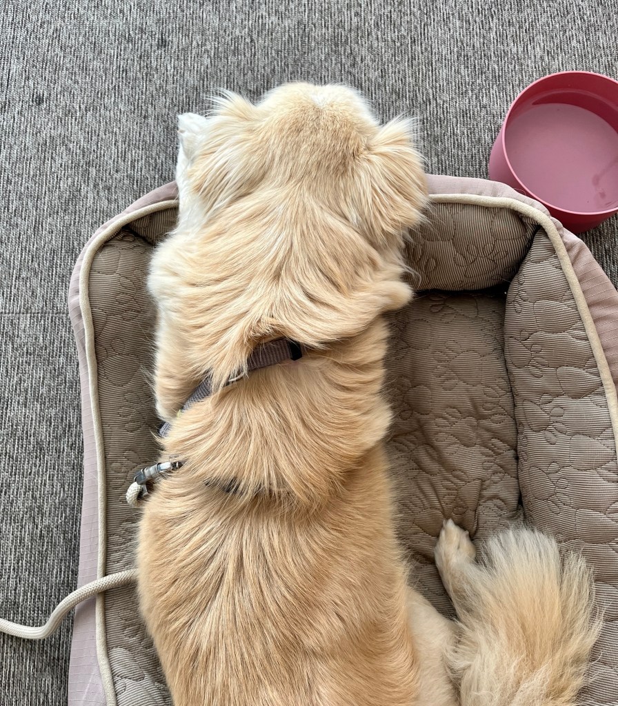 Sie ist brav auf ihrem Platz geblieben und hat nicht – wie früher immer! – die andren Hunde angejault. Das war wirklich super!