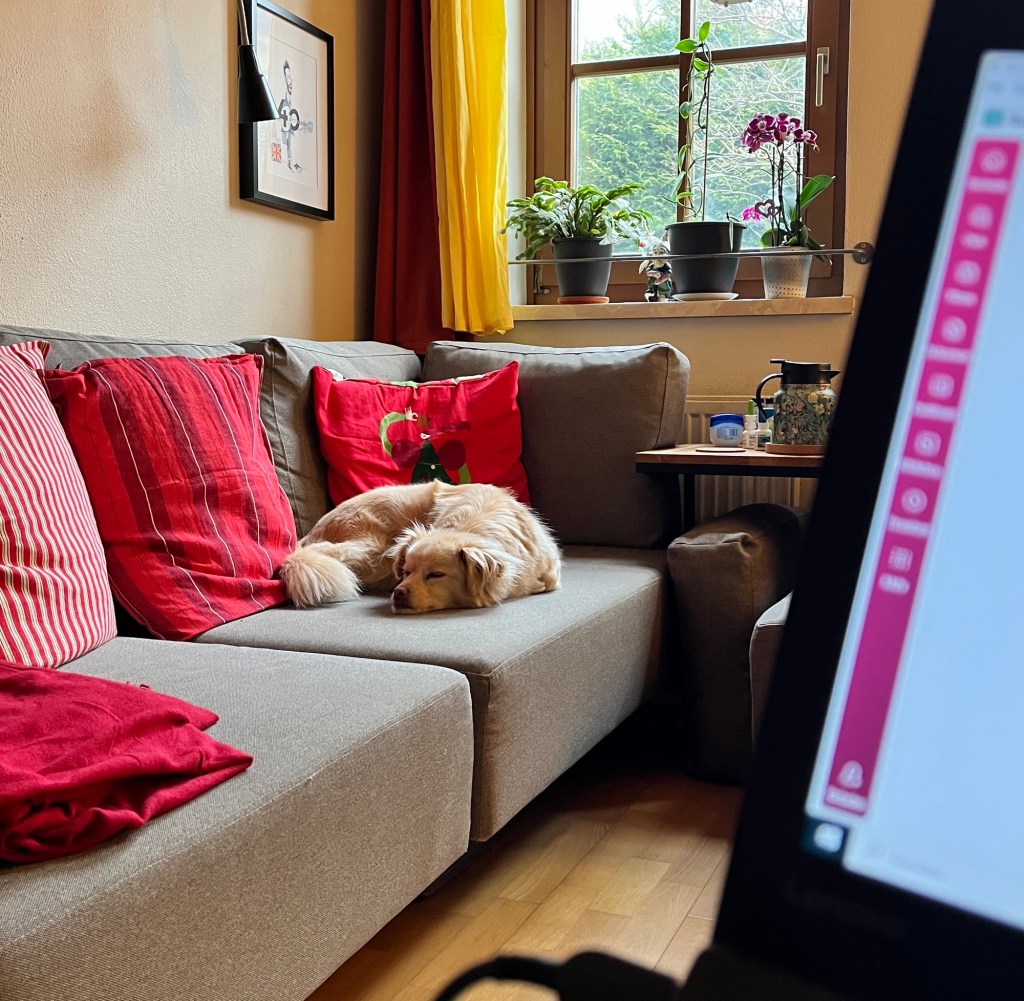 Ich arbeite momentan viel im Homeoffice – Fenja findet das super: