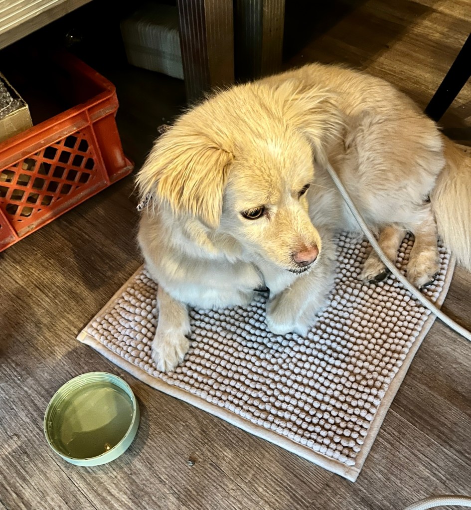 Der Termin war in einer Bar … allerdings vor den Öffnungszeiten. Fenja fand das ziemlich cool … und auch, dass sie einen anderen Hund kennenlernen durfte:
