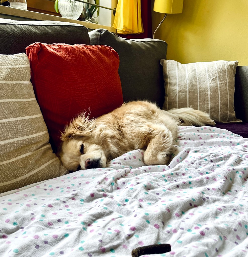 wenn der Hund auf dem Sofa liegt und der Kopf dabei runterhängt und er tatsächlich seelenruhig schnarcht.🤣